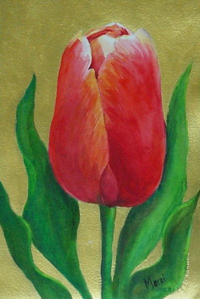 ![]() "Gilding the Tulip" 15x11 watercolor with gilded background |