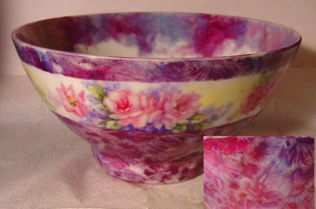 CRYSTAL MAGIC Crystal Magic is a faux crystalline glaze look. It will make Jack Frost patterns on a glazed or glass surface and it can either be left unfired ( beautiful when applied over fired gold or silver) or it can be kiln fired . The firing process requires the CM to be covered with a coat of luster. The bowl on the right shows Crystal Magic on the outside and inside surface. Turquoise and Carmine luster were applied over the dried CM and fired at Cone 017 ( 1377F/747 C) See below for pricing |