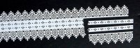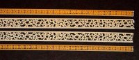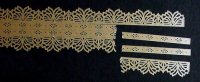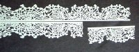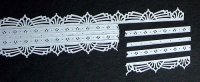 Laser Cut paper lace strips ... These are all 11 5/8 inches long and 1 5/8 inches wide (298 x 43 mm) and will go completely around a 3 inch box...They are pre-scored to separate into sections which can be used alone or in combination with other sections. The pictures below show the separations in the strips |